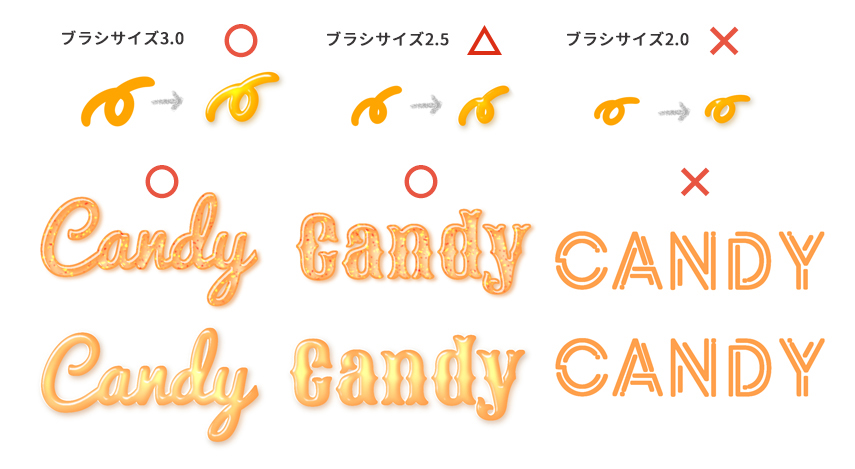 また、例え小さくしても、線が細すぎるフォントなどには上手く適用できず、オートアクションがストップしてしまいますので注意しましょう。
