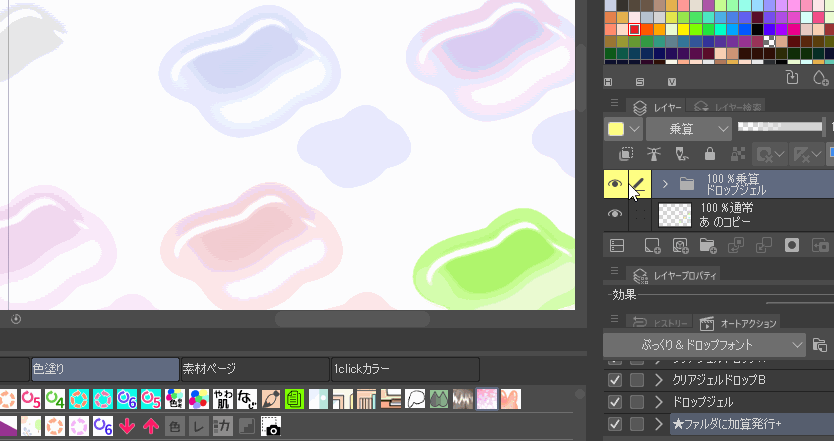 この一連の作業をクリスタのオートアクションに落とし込めば、次からは1click!でこのぷっくりドロップ加工を施すことができます!