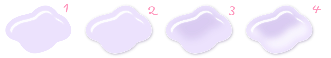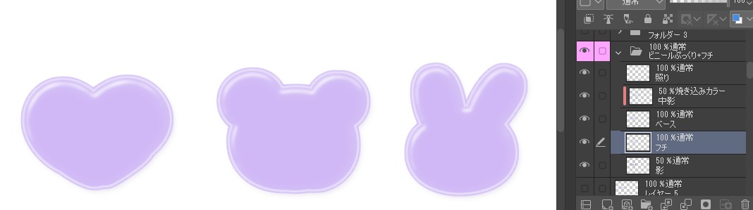 光は最小限にし、「照り」部分をぼかしておさえめにすると、ビニールタイプのぷっくりシールスタイルになります。