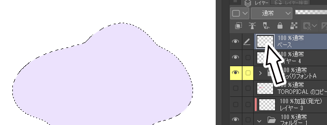 ベースのレイヤーをもとに、ふたたび選択範囲をとります。