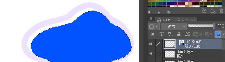 レイヤー複製をし、ずらします(わかりやすいように白を青に変更しています)
