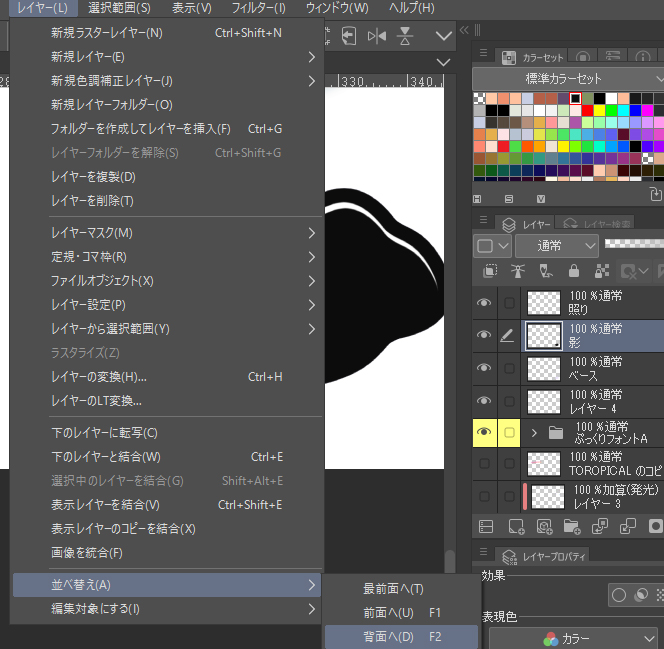 →黒く塗りつぶし、名前は「影」にしておきましょう。