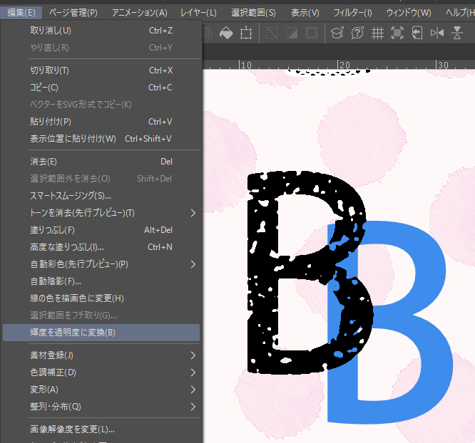 ⑤「編集 - 輝度を透明度に変換」