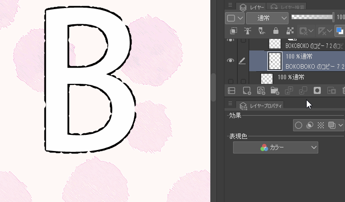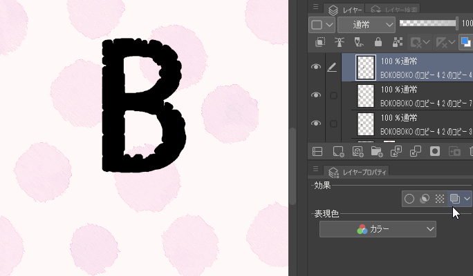 ここまでは、ぼこぼこの素材を足すことで、文字をぼこぼこした風合いに変化させていました。